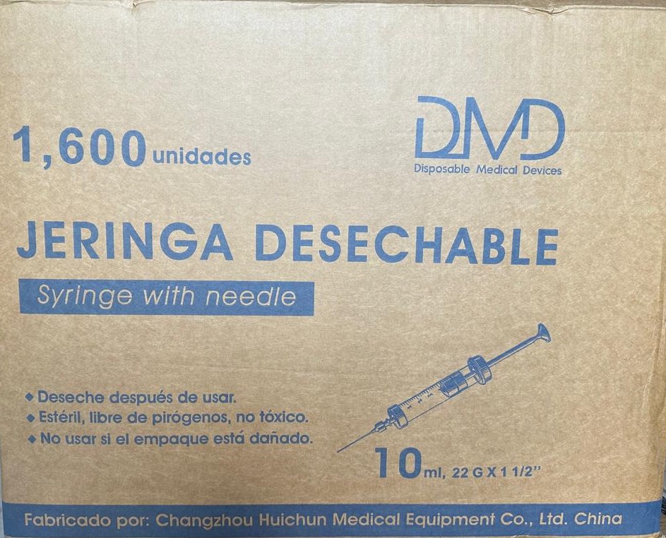 JERINGA DESECHABLE 10 ML 22 G X 1 1/2 FARDO X 1600 JERINGAS