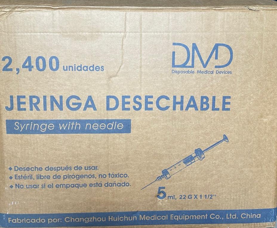 JERINGA DESECHABLE 5 ML 22G X 1 1/2 FARDO X 2400 JERINGAS